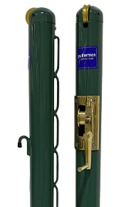 TENNIS COURT POSTS & PICKLEBALL POSTS 2 /7/8" diameter galvanized round 12 gauge pipe. External or Internal aluminum winding with enclosed gear assembly. . Removable handle. Includes lacing rods. Electrostatically applied enamel finish. Welded set collar sits flat against ground sleeves to prevent water getting into ground sleeves. Choice of green or black (#PUT-Prop-1B ( B is for black, (G- is for Green) $227.00 a pair. Intrernal winder is much more expensive. Call for pricing. GROUND SLEEVES. Sleeve posts for 2 7/8" posts. Cemented into court for easy removable of post. $35.00 each (# PROGS01.) PIPE ANCHOR.(# PRONA01) Cemented into court and used to fasten the center strap Tennis net center strap (#C-TCS) $12.50 OR PRONS01 CHECK WITH YOU BLACK TOP GUY ABOUT EXACTLY WHAT YOU WILL NEED. TENNIS COURT POST REEL. Heavy duty universal fit post reel idea as replacement for broken or discontinued reel models. Epoxy finished steel reel with automated check latch and long detachable handle. Green or black. (#PROHC1B) $79.00 Many camps use these to reduce slack or keep taught golf cage and volleyhall nets. |